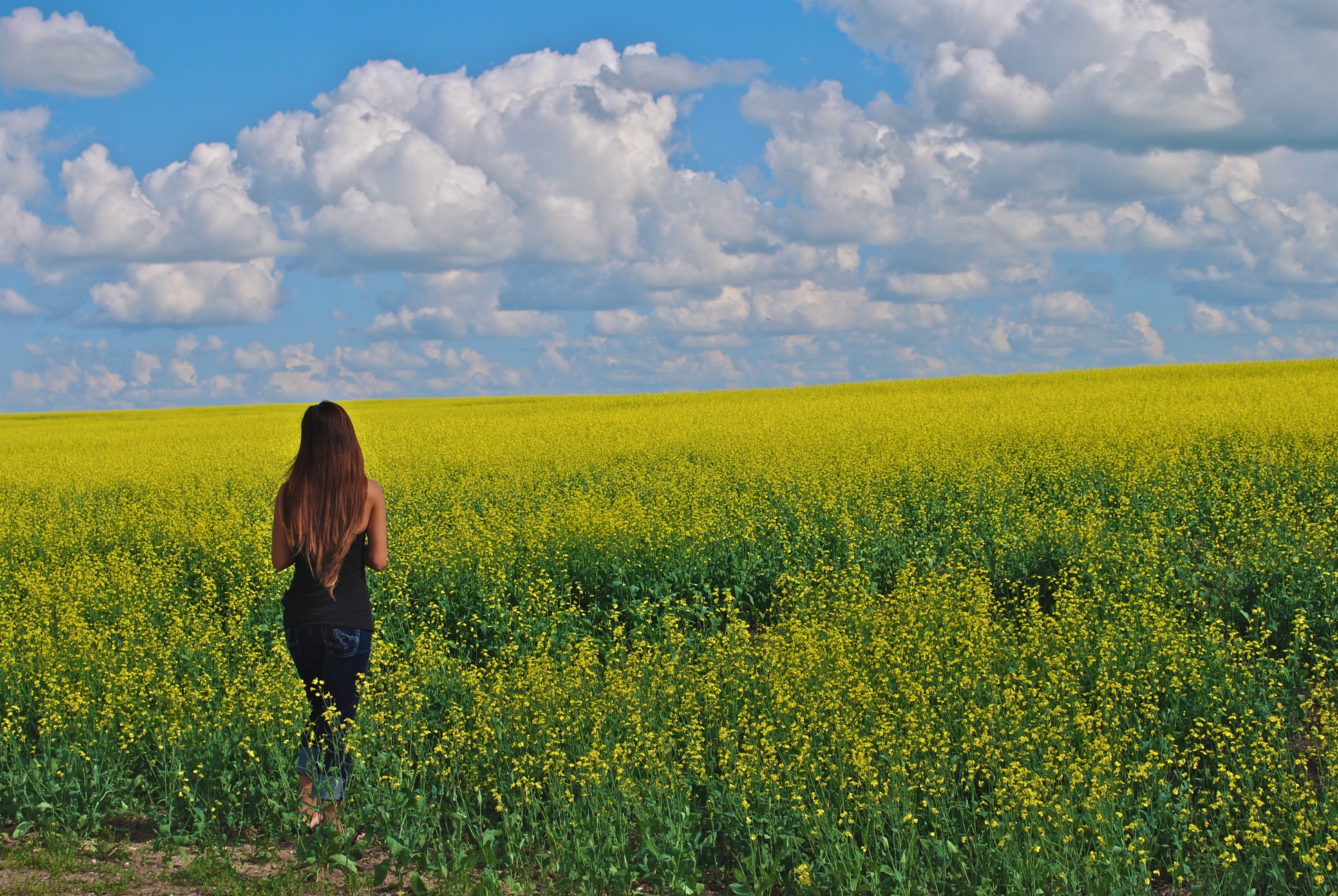 The canola field sits just on the edge of The Crooked Bush. Amber, with camera in hand, was taking closeups of the canola. I, on the other hand, was taking distant shots. This is my baby against a colorful backdrop.