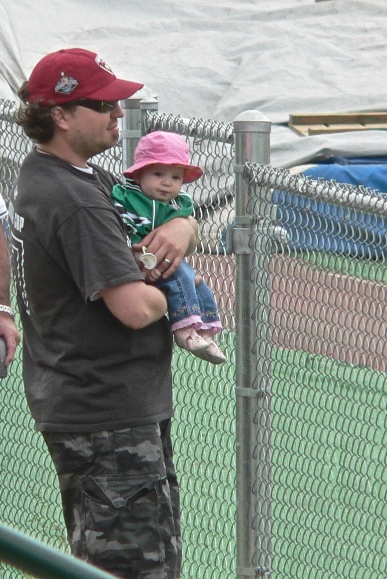 Jon and Kate Klassen checking out the Riders. A future Rider fanatic getting some knowledge from Dad.