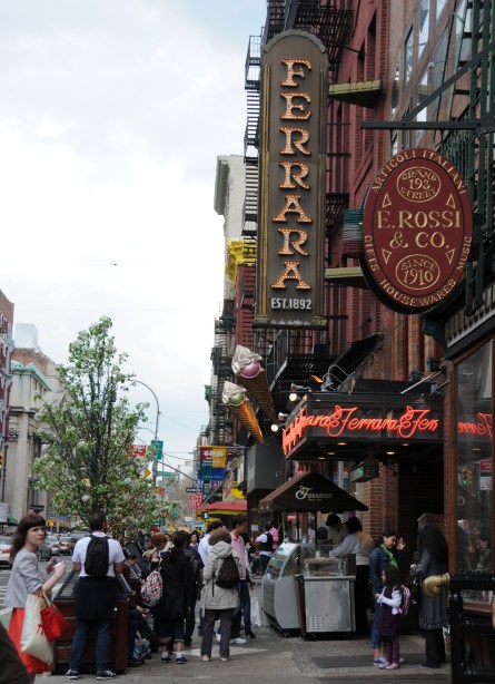 After this picture was taken, the girl in the red dress and matching handbag approached me. She barely spoke any English but was able to communicate that she would like a picture of herself in front of the “Ferrara” shop. She handed me her camera and struck a pose. Now this pose is not what we would normally do…hands clasped together, staring straight into the camera, saying “cheese” (or in whatever language she spoke). Her pose was a hand on the hip, an arm stretched to the sky with the palm facing up like she was holding a serving tray and the toes of one foot pointing straight down to the ground. She would have gotten a job for the “Price is Right” in an instant.